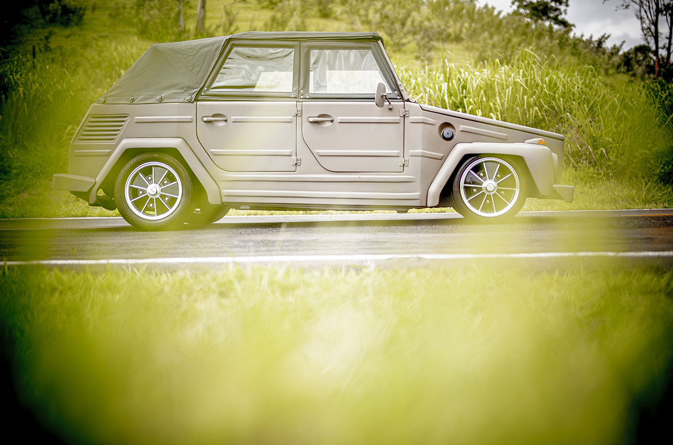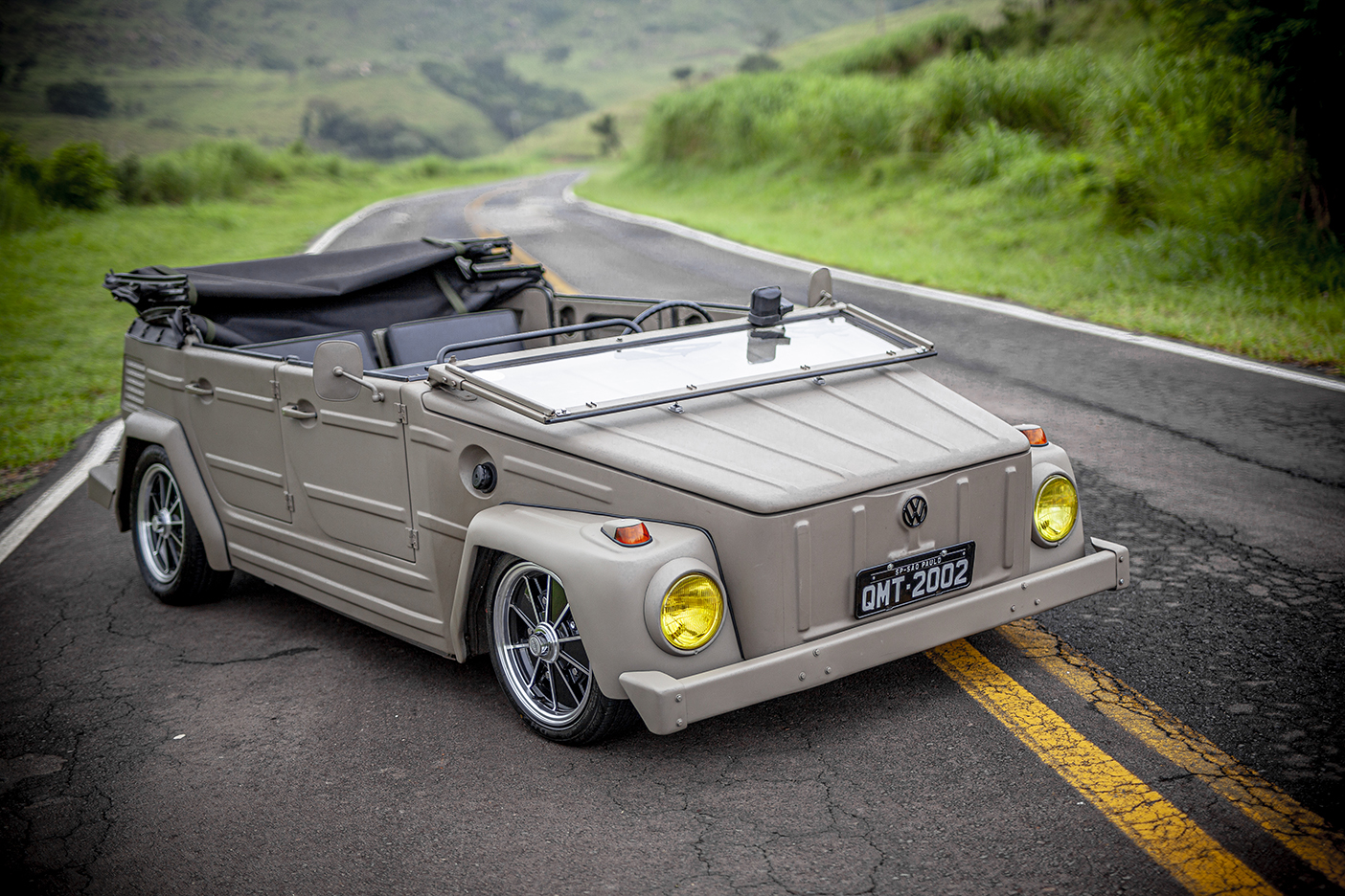 Jamais produzido no Brasil, esse curioso utilitário Volkswagen é uma variação civil do jipe militar Kübelwagen utilizado na 2ª Guerra Mundial. Uma das raras unidades em território nacional, o exemplar das fotos pertence ao empresário paulista Naldo Gomes, que elegeu as rodas BRM Raw na hora de executar esse perfeito projeto de customização. Quer saber mais?
